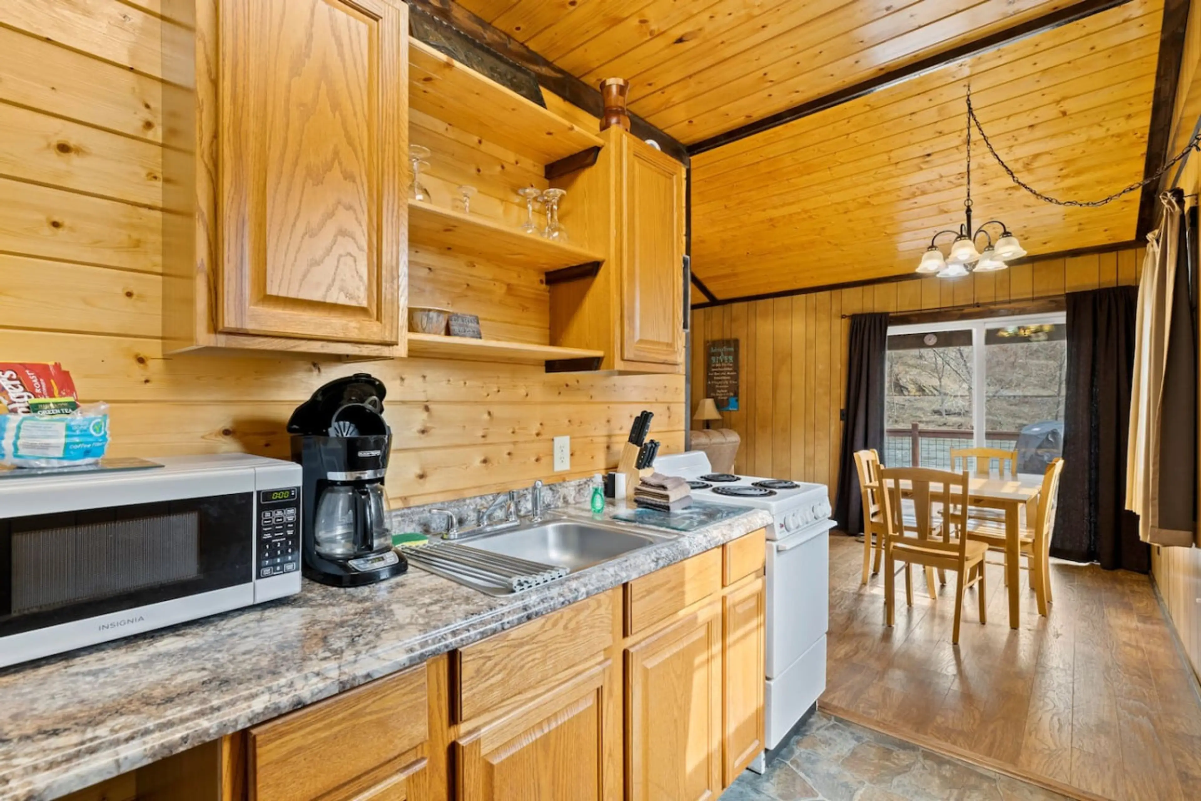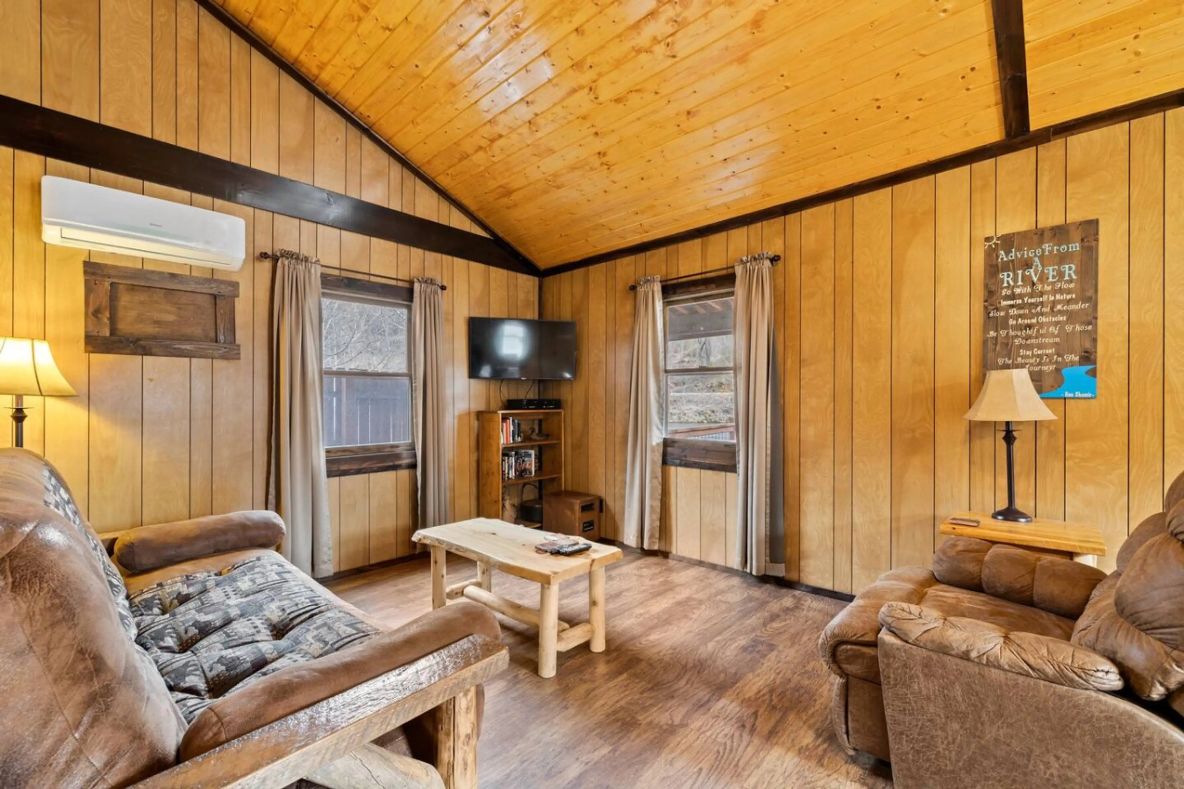 The cabin is cozy. Sits right on the river. Dishes were dirty. Sofa bed needs replaced. But we really enjoyed our stay.