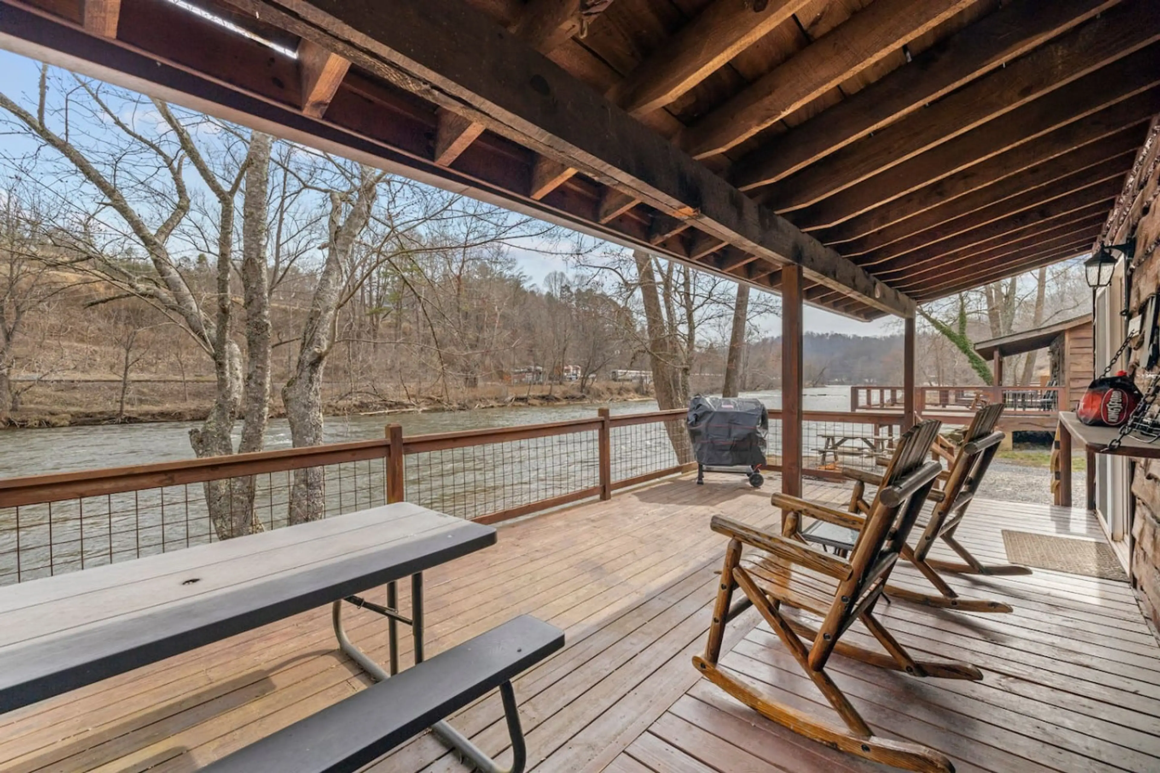 Welcome to Laurel Bush Riverfront Cabins! This cozy cabin sits right on the peaceful Tuckasegee River, where you will wake up to soothing water sounds and enjoy quick access to the Great Smoky Mountains. Relax on the spacious deck perfect for fishing and grilling, with all the essentials for a comfo...